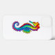 Articulação artificial, brilhante, arco-íris, cavalo de mar poligonal sobre fundo branco. Tatuagem brilhante.