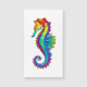 Articulação artificial, brilhante, arco-íris, cavalo de mar poligonal sobre fundo branco. Tatuagem brilhante.