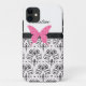 caso do iPhone 5 com a borboleta cor-de-rosa bonito e cor damasco com cor que de acento branca você pode mudar. Personalize o monograma com todo o nome ou iniciais. Protege seu telefone móvel no estilo e tem aberturas para todos seus portos e botões. Projetado para senhoras ou meninas e qualquer um que recolhe coisas da borboleta.