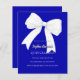 Um fundo azul real colorido, decorado com um grande arco branco. Personalize e adicione um nome e detalhes da parte. 1 folha = 1 convite impresso de borda a borda.