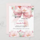 Um fundo branco elegante, decorado com um grande arco cor-de-rosa e flores cor-de-água rosa. Personalize e adicione um nome e detalhes da parte. Fundo: fundo rosa suave. 1 folha = 1 convite impresso de borda a borda.