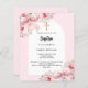 Um quadro de arco branco e fundo de pinta leve. Decorado com flores cor-de-rosa e arcos de alfinetes. Uma cruz ouro. Personalize e adicione um nome e detalhes. I sheet = 1 convite impresso de ponta a ponta.