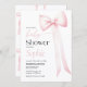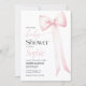 Convite para chá de fraldas com arco de coquete rosa-d'água.