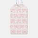 Chá de fraldas de Arco de Garota Rosa Moderna Obrigado Etiquetem o quadro de uma menina simples e elegante e o obrigado de chá de fraldas que você marca para uma menina que também apresenta uma borda de rosa claro e um padrão de arco no verso.