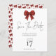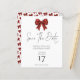 Arco de Natal do Coquetel Vermelho do Orçamento Salve a Data. Um valor orçamentário, tamanho menor 4,5 x 5,6 pol de semivrofe semelhante em espessura a um cartão postal. Há um por folha, Sparkle para convidar os seus convidados festivos com um arco de brilho falso e coordenar o padrão no outro lado a preto clássico. Um script de conjunto informal na moda para Salvar a Data e o resto do texto que você pode personalizar facilmente.