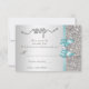 Cartões de resposta personalizados formais e personalizados para qualquer evento - casamentos, chá de bebê, festa de aniversário, festa de 16 anos, celebrações de Quinceanera, noivados, chá de noiva, etc. RSVPs duplos elegantes e personalizados em prata e azul turquesa / turquesa com um lindo brilho impresso em glitter, cristais, lantejoulas, laços e fitas vetoriais brilhantes e impressos e imagem estilosa e bonita de diamantes brilhantes e jóias e texto de RSVP romântico fixo com floreios e corações. Esses cartões glamorosos e sofisticados são decorados em ambos os lados. Cartões duplos bonitos, elegantes, modernos e com muito brilho e glamour. Observação: todos os convites no Zazzle têm imagens impressas planas. Tenho produtos correspondentes na minha loja. O texto, a fonte e as cores da fonte são todos personalizáveis para atender às suas necessidades. Se precisar de ajuda para personalizar seu produto, por favor entre em contato comigo através da minha loja