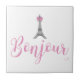Este design Bonjour Eiffel Tower e arco rosa parecem na moda neste azulejo. Design por Inge Lewis. Localize mais itens correspondentes na biblioteca online ingeinc.com.