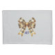 Um design de nu, rústico, com arco em padrão de ouro e xadrez preta, acentuado com um monograma preto, cria um travesseiro elegantemente simples.