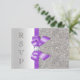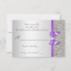 Convites personalizados de RSVP de casamento em cartões planos. Elegantes cartões de resposta customizados com cores prata e lavanda, impressos dos dois lados, com um lindo padrão de lantejoulas brilhantes, laços e fitas gráficas vetoriais brilhantes e uma imagem estilosa e bonita de diamantes e joias com brilho e fonte roxa. Esses RSVPs sofisticados, glamorosos, fashion, vibrantes, lilás, lavanda, roxo e prata são decorados em ambos os lados. Cartões lindos, chiques, modernos e duplos, com brilho e glamour. Por favor, note: Todos os convites no Zazzle têm gráficos impressos planos - não são laços, joias ou lantejoulas reais. Tenho produtos combinando para casamentos na minha loja. O texto, a fonte e as cores da fonte são todos personalizáveis para atender às suas necessidades. Se precisar de ajuda para personalizar seu produto, por favor