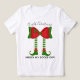 "Um Natal, Tire minhas meias!" engraçado com um arco preto vermelho e verde, com meias verdes e listradas brancas com botas festivas verdes de dedos de coroa com sinos ouros.