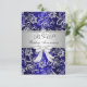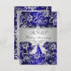 Convite de Aniversário RSVP. Floral prateado e azul com arco de joia branca. Exclusivo Zazzle. Personalize com seus próprios detalhes. POR FAVOR, OBSERVE que todas as imagens planas! Elas NÃO têm Arcos, Diamantes ou Joias reais!!