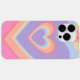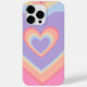 Um desenho abstrato colorido com corações em camadas em vários tons pastel, incluindo rosa, roxo, bege e azul, colocado sobre um fundo rosa suave. Os corações concêntricos criam um padrão suave e fluente que transmite calor e afeto.