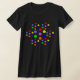 Esta camisa apresenta uma série de pontos representando as sete cores do arco-íris, vermelho, laranja, amarelo, verde, azul, índigo e violeta. Os pontos estão dispostos para um padrão floral. Os sete pontos maiores formam o centro da flor e seis grupos menores de manchas formam as pétalas externas, resultando em um bonito design de pegar os olhos. A design é mostrada em uma lenda preta, mas também está disponível em muitos outros estilos e cores de roupas para crianças, bebês, mulheres e homens.