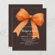 Um fundo castanho escuro e escuro. Decorado com um arco laranja. Personalize e adicione os detalhes da festa. 1 folha = 1 convite impresso de borda a borda.