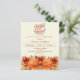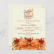 Um creme suave, cor de fundo bege. Decorou um grande arco laranja e caiu flores. Personalize e adicione os detalhes da festa. Script de texto: Grateful e abençoado. 1 folha = 1 convite impresso de borda a borda.