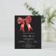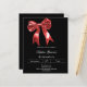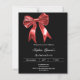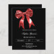 Um fundo preto, decorado com um grande arco vermelho. Personalize e adicione um nome e detalhes da parte. Texto branco. 1 folha = 1 convite impresso de borda a borda.