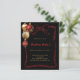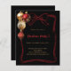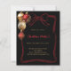 Para uma festa de Natal com familiares e amigos. Decorado com um simples arco vermelho desenhado à mão, ruivo e bolhas douradas. Personalize e adicione os detalhes. Festa de Natal de coração. Fundo preto. 1 folha = 1 convite impresso de borda a borda.