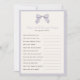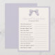 Perguntas editáveis sobre o título do jogo e texto para o chá de fraldas ou chá de panela. Como você sabe que a mãe é, quem sabe o melhor jogo de mamães. Apresenta um arco pintado manualmente com xadrez sutil em fundo de púrpura clara e marfim; borda e cor de fundo editáveis em frente e atrás.