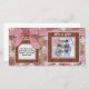 É uma garota! Anúncio personalizado de nascimento de fotografia. Fita e arco cor-de-rosa, com fundo floral cor-de-rosa e verde e armação de madeira. Anúncio de design de nascimento bonito. É fácil adicionar fotos e texto a este design.
