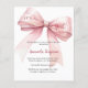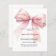 Um fundo branco elegante, decorado com um grande arco rosa. Personalize e adicione um nome e detalhes da parte. Texto no arco: É uma garota! 1 folha = 1 convite impresso de borda a borda.