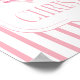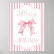 Poster de Natal Festivo com um arco de fita cor-de-rosa arrojado e fundo vermelho e branco riscado. Perfeito para adicionar um charme alegre de férias à sua sala de estar, à entrada ou ao evento sazonal.