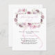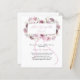 Um fundo branco elegante, decorado com flores cor-de-rosa e um arco cor-de-rosa. Personalize e adicione um nome e detalhes da parte. Texto: Ela é casando! 1 folha = 1 chá de panela impresso borda a borda.