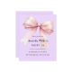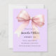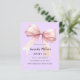 Lavanda macia, fundo cor-de-roxo, decorado com um arco cor-de-rosa grande. Personalize e adicione um nome e detalhes da parte. 1 folha = 1 convite impresso de borda a borda.