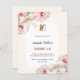 Quadro de arco branco e bege macio, fundo colorido creme. Decorado com flores cor-de-rosa e arcos beges. Personalize e adicione um nome, idade e detalhes. 1 folha = 1 convite impresso de borda a borda.