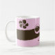 Esta caneca caracteriza flores de um stripe* do marrom do café em um fundo cor-de-rosa. Tudo amarrado acima com um arco cor-de-rosa grande.