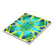Azulejo cerâmico em forma de corante de gravata em tons de azul de cobalto, verde e amarelo com fundo verde aqua / seaglass
