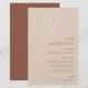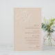 Um belo cartão de cardápio de casamento baseado em tipografia, que apresenta suas iniciais em letras de script sobredimensionadas no topo, em tons em tons para um efeito de marca d'água. Personalize com seus itens de menu embaixo, alinhados à direita. A nossa Mancha de Areia é uma mistura elegante de tons de terra, com natas pálidas e letras de argila terracota em um fundo bege suave.