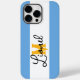 Vamos argentina! Futebol e esporte Comemora os campeões mundiais. Esta simples capa de telefone mínima lembrará sempre esse momento histórico de vitória! Ao contrário das cores da bandeira argentina, este padrão azul e branco do Céu Colorido, com uma tipografia de ouro preto-e-amarelo. Esta design capa de telefone colorida, na moda e elegante moderna pode ser facilmente editável e permite personalizá-la adicionando seu nome em letras de monograma do ouro histórico e personalizá-la alterando o nome no verso.