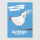 Ariège france, poster de viagens retrô com uma galinha desenhada à mão.