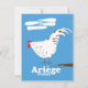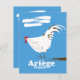 Ariège france, poster de viagens retrô com uma galinha desenhada à mão.