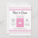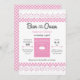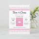 Este convite moderno é ideal para um Chá de fraldas com o tema "Armas no Forno". Ele apresenta um fogão no centro e inclui um fundo de xadrez e uma borda de rendas na parte superior e inferior. Este design elegante tem um retrato. A cor rosa, branca e cinza a torna ideal para uma mãe esperar uma menina.