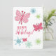 Borboletas bonito feitas de agulhas de tricô com bola de flocos de neve com fio neste cartão de Natal "feito à mão com amor" para dar sua lista com artesanatos de malha.