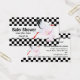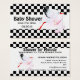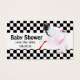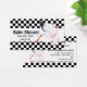 Chá de fraldas Salve a data - Quadro de checagem preto e branco e carregando de cegonha adorável um bebê rosado - chá de fraldas bonito Salve a data cartão de visita para entrega no trabalho ou no playground ... onde sempre - mais fácil do que enviar convites para destinatários próximos de casa