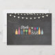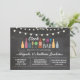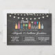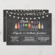 Estoque que do giz o partido do bar convida com luzes da corda & uma seleção das garrafas & dos vidros. Aperfeiçoe para um noivado, chá dos casais ou um estoque o partido do bar, muda o texto para serir seu partido.
