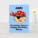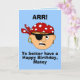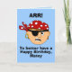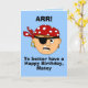 Este cartão de aniversário de pirata tem um pirata-menino com um colar de olho, uma bandana e uma moto. O cartão diz, "Arr! É melhor você ter um feliz aniversário, Matey." Dentro diz, "Ou eu faço-te andar pela prancha!" Isso é perfeito para crianças, especialmente meninos que amam piratas e falam como piratas. Personalize-o alterando a mensagem no modelo. Ou clique em personalizar para adicionar sua própria fonte, alterar a fonte ou a cor de fundo.