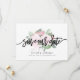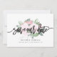 Este design apresenta um arranjo de flores em aquarela rosa suave por trás das palavras "salve o dia" em letra manuscrita preta e negrito. Os nomes do casal e os detalhes do casamento são exibidos abaixo e podem ser personalizados. Gráficos ©Create The Cut