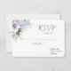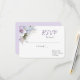 Arranjo floral em aquarela suave com tons de lavanda e azul sobre fundo branco para resposta de casamento. O texto pode ser personalizado.