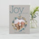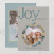 Tendências em tons de azul poeira e folhagem de philodendro dourado ao redor de uma moldura de foto redonda com fundo cinza cogumelo. Alegria para o Mundo em fonte contemporânea (que você pode alterar se desejar). Fácil de personalizar - o verso é um segundo local para uma foto favorita, ideal para seus amigos e familiares enquadrarem!