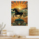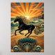 Art Deco Black Stallion Beach Waves Sunset Poster