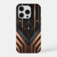 A luxurious Art Deco digital design featuring symmetrical geometric shapes in polished copper and metallic silver against a deep matte black background. Layered diamonds, V-shapes, and diagonal lines create depth and elegance, while subtle reflections enhance the metallic sheen. Perfect for adding a sophisticated, timeless aesthetic to modern interiors, stationery, or fashion-inspired products that celebrate precision and luxury.