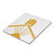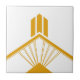 Estilo de deco de arte nítida com detalhes geométricos de ornamento decorativo de borda com azulejo cerâmico em fundo branco. Observe que o ouro é um impressão de cor plano amarelo-mostarda e não é uma cor real de ouro. Design original único, perfeito para o estilo de vintage moderno ou de arte deco.