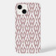 Esta capa de telefone tem um design de diamantes Art Deco conectado por linhas curvas em vermelho de tijolo.