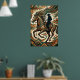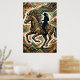 Capture the untamed spirit of the frontier with this "Geometric Rider" Art Deco poster. This stunning artwork features a noble horse and its silhouetted rider mid-stride, surrounded by an intricate explosion of tribal zigzags and angular geometric patterns. The sophisticated palette of deep teal, weathered bronze, and earthy terracotta creates a weathered, vintage look that fits perfectly in a modern ranch, rustic lodge, or contemporary Southwestern home.