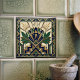 This exquisite ceramic tile showcases a stunning Art Deco design, featuring a stylized lotus floral motif in deep navy blue and lush green, accented with opulent gold details. The geometric patterns that surround the central floral element add a touch of sophisticated elegance, reminiscent of the roaring twenties. Perfect for adding a vintage flair to any space, this tile brings a timeless charm and a touch of luxury to your home decor, whether used as a backsplash, accent piece, or wall art. Its intricate details and rich color palette make it a true statement piece.