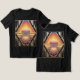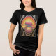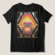 Esta t-shirt preta apresenta uma pintura iridescente do nascer do sol no estilo Art Deco. Acentos de folha de ouro falsos adoram os raios solares e um arranha-céu elegante no fundo. A camiseta é uma camiseta Tri-Blend da Canvas Bella feminina.