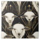 Ovelha desenhada em formas e padrões elegantes e simétricos, com sotaques de ouro metálicos e linhas geométricas agudas para uma sensação de arte luxuosa